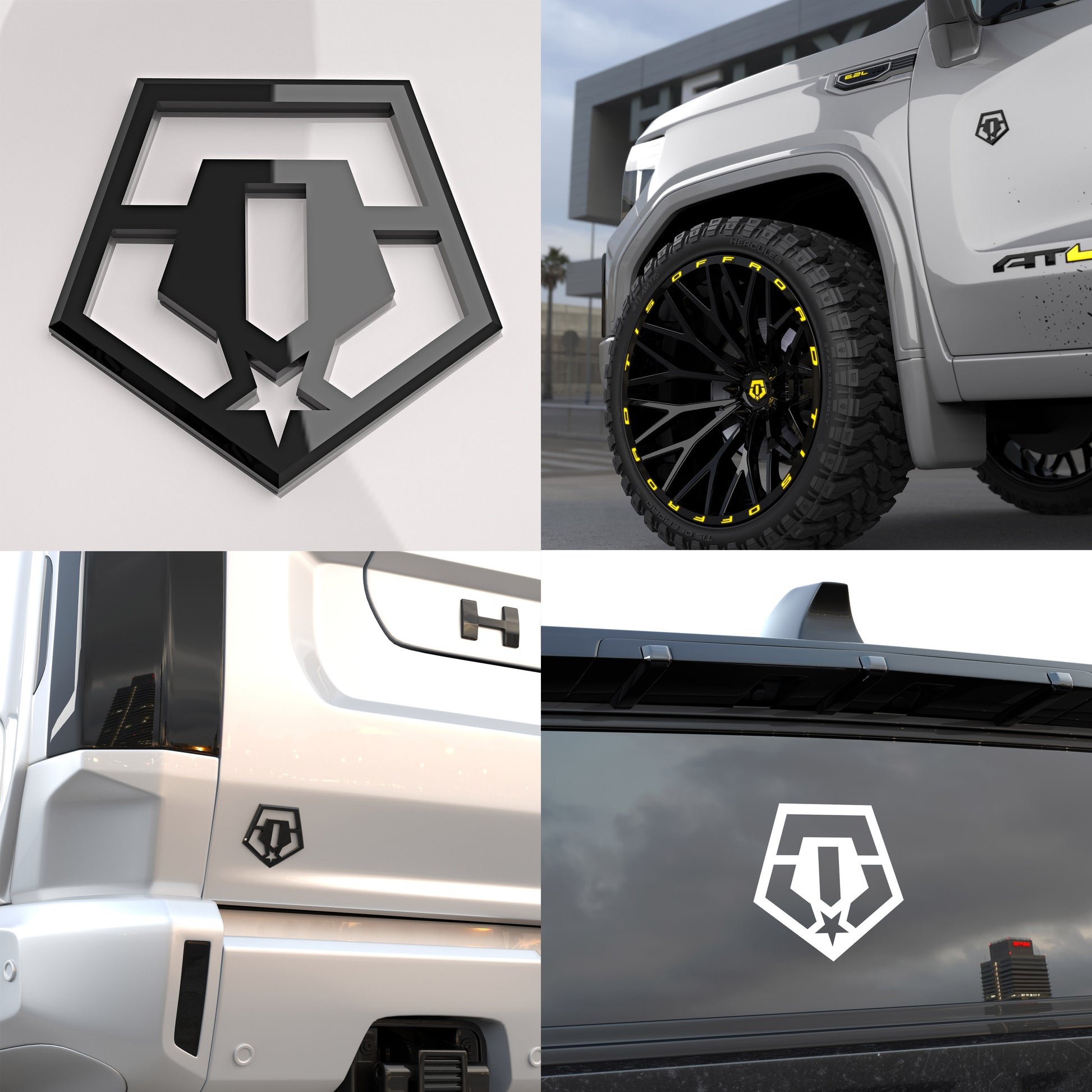 Three (3) TIS Badges (driver side, passenger side, rear placement) in gloss black plus a white 8" TIS Decal. Strong 3m adhesive for use on vehicle exterior.